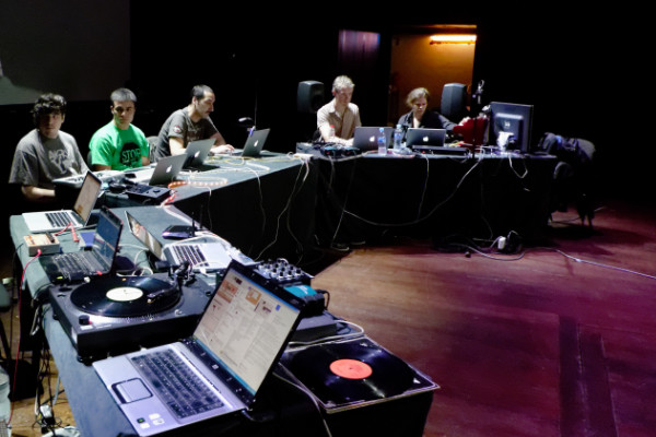 We performed three pieces. First up was a revival of one of the BLO’s classics from previous years: la Roda (“the wheel”), in which fragments of audio pass through the hands of each player successively, allowing them to modify and then pass them on – much like the children’s game “telephone”.